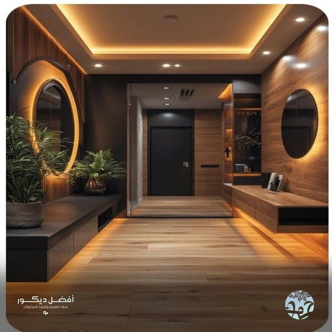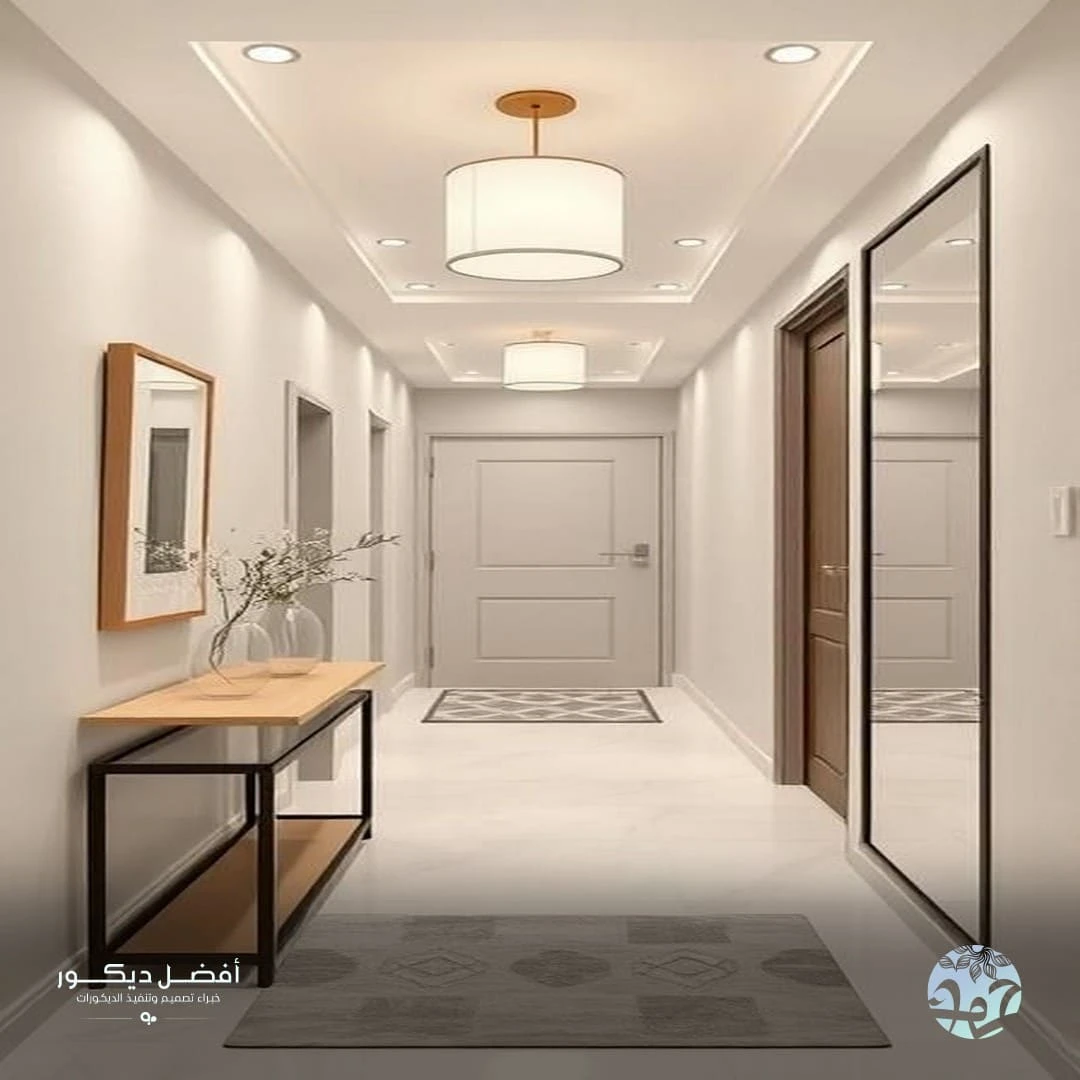 | ديكور مرايا للمداخل | توسعة بصرية، تعكس الإضاءة، تضيف عمق | المداخل الصغيرة والمتوسطة |